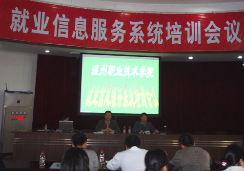 为加快我院毕业生就业工作信息化建设,加强毕业生就业管理,提高毕业生就业工作效率,学院招生就业处于2007年11月11日,在行政楼多功能厅召开我院就业信息服务系统培训会议。会上,招生就业办对系统的功能和操作办法进行了介绍和演示。