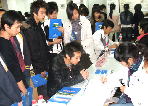 12月13日,我院举办了轻工专场招聘会,2008届服装设计、鞋革设计、装潢设计的毕业生们迎来了寒窗苦读十五年的“胜利喜悦”——当天,就有七成以上的毕业生与用人单位达成就业意向。庄吉集团、法派集团、乔治白服饰、云艺装饰有限公司、红黄蓝集团、名典鞋业有限公司、卓诗尼鞋业有限公司等40多家温州企业前来“抢”、“挖”人才。