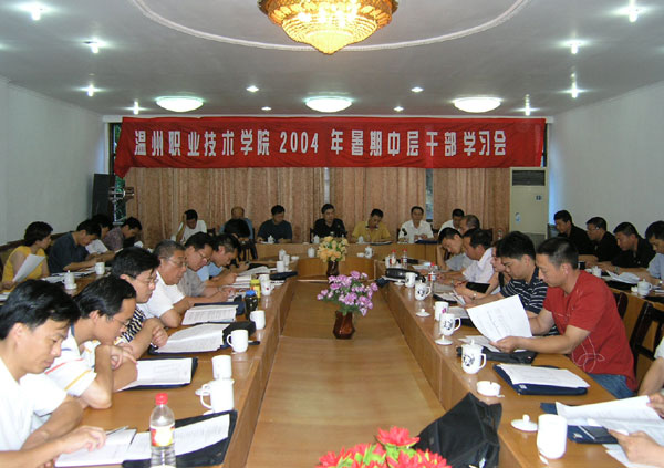 7月7日—9日,学院2004年暑期中层干部学习班在美丽的平阳南麂岛召开,学院50多名中层干部参加了会议。会议听取了学院宣传部部长刘世长《科学发展观》的专题报告。计算机系主任李永平、人文系副主任黄雪英分别在会上做了工作经验介绍。本次学习班,不仅听取了报告、学习了文件,还分团对金陵科技学院闵光泰教授的辅导报告以及学院如何实行二级管理、学院的发展方向等问题展开了研讨。在讨论中,学院中层干部发扬了主人翁精神,畅所欲言、共商校事,提出了众多建设性的建议。