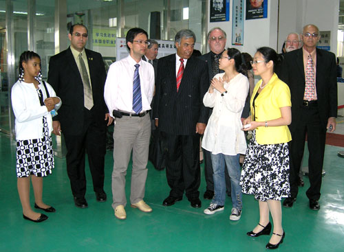 5月6日下午,美国加利福尼亚州匹茨堡市前市长迈克尔•基率领的政府代表团一行来我院参观访问。丁金昌院长、王向红副院长陪同美国客人参观考察了我院校园和实训基地。