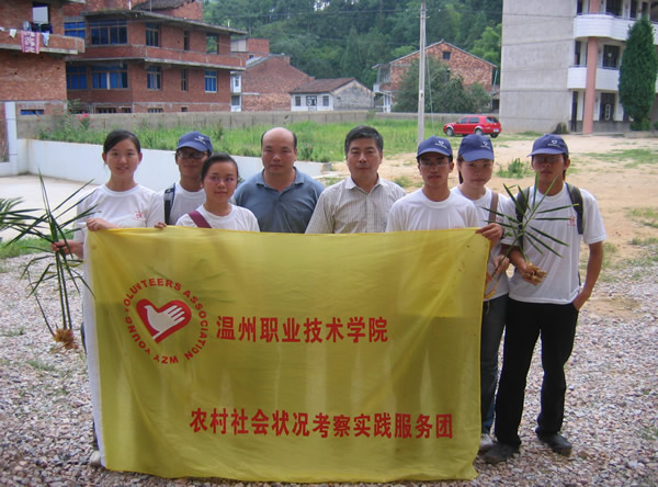下午,领导一行视察了我院实践队各团的工作。首先,他们来到技能培训团的“开心教室”里,来自我院各系的“技能特长学生”正在为当地的学生们培训英语、计算机、导游、绘画、礼仪等技能。酷暑下,领导们还看到村镇建设规划团的同学们正背着测量器具出发。负责村镇建设实践的同学说,他们本来已完成计划测量范围,这次的出发是由于镇政府强烈要求帮忙规划镇政府预留的一片空地的。在视察中,领导们还发现其中的一个教室里堆放了许多家电,公益服务团家电维修“技术员”们正在满头大汗地在修理故障家电。据了解,该实践团除巡村免费修理家电活动深受村民欢迎。许多村民把家电送到实践基地来,于是实践团把宿舍改成了临时维修室,这几天他们都维修到深夜12点多,另外他们开设了上门维修家电的服务项目。在视察时,领导们还正巧碰到了从生姜种植基地调查归来的农村经济、社会状况考察团的同学,领导们亲切询问了考察的情况,并与同学们合影留念。