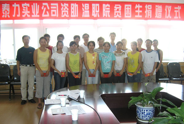 9月7日是我院正式开学的第二天。正当一些贫困生为学费犯难时,泰力实业有限公司的老总滕月炎为我院12名贫困生送来了2万多元的爱心红包。贫困生每人分别获得了1500元的学费资助,减少了肩上学费的负担。