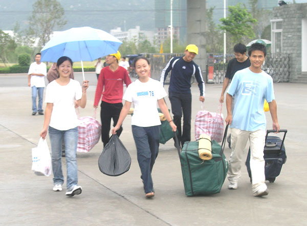 两天的迎新活动中,校园里到处可以看见青年志愿者,提包送茶,引路指牌,让每一位感受到宾至如归的感觉。由礼仪队、“微笑带路”队、行李保管队、日用品发送队、记者队、播音队等迎新队伍活跃在校园的各个角落,各系团学组织干部队伍齐心协力,认真迎接每一位“客人”。有一位学生家长在接受学生记者采访时说:“到了学校,一看校园环境,一接触老师与学生,我放心了很多。”