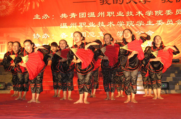 9月27日晚,2004年温州职业技术学院“迎新生·庆国庆”大型文艺晚会在图书信息大楼广场前隆重举行。为入学新生举办专场文艺晚会是我院由来已久的优良传统。本次迎新晚会由我院团委、学生会主办,赞助单位是温州电信茶山支局。