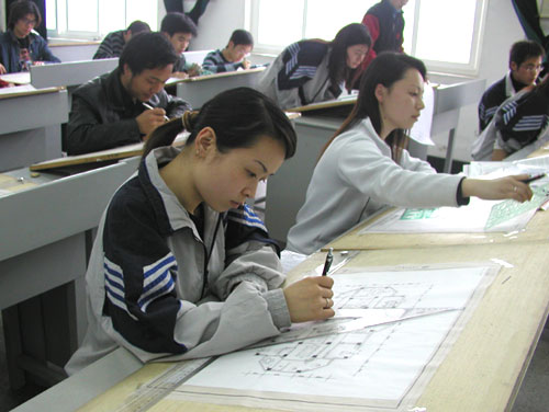 图为轻工学院学生参加装潢设计大赛
