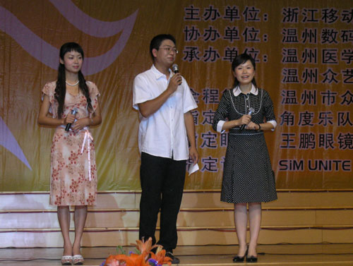 晚会主持人——温州电视台主持人陈沐琼(右)、温州电台主持人赵新(中)