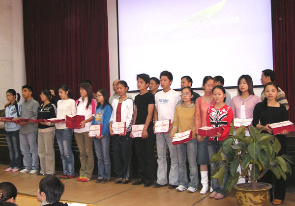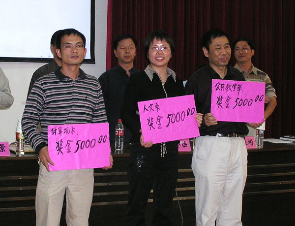 会上,学院还对为学院教学工作做出卓越贡献的人文系、计算机系、公共教学部进行了表彰并颁发了奖金。这些系部分别为学院在英语等级考试、计算机等级考试、全省数学建模型比赛中取得好成绩做出了积极的贡献。同时,开幕式上还表彰了03/04学年第二学期职业技能比赛优秀组织集体——工商管理系以及在比赛中获奖的同学。