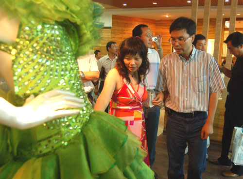 教育部范唯处长对我院学生设计的服装作品赞赏有加
