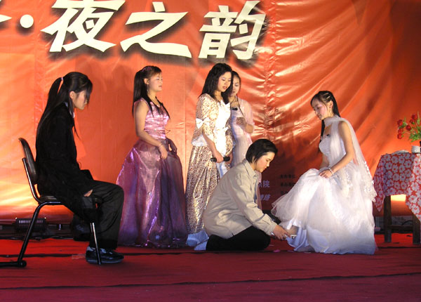 在晚会上,同学们自编自导的节目精彩纷呈,有英语话剧《灰姑娘》、英文歌曲演唱、健美操、现代舞等。活动中,外教马歇尔也应邀参与同学们的活动之中,与同学进行英语猜词。温州大学(筹)、温州电视大学、浙江东方职业技术学院等高校也纷纷选送英语节目为晚会助兴,使同学们在活动增加了友谊,促进了交流。