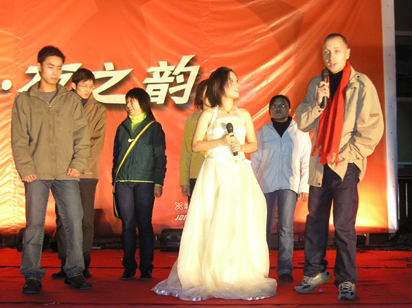12月9日,我院第五届“捷路·夜之韵”英语晚会在体育馆前露天开演。晚会现场高朋满座,初冬的寒意没有驱散大学生们对学习英语的热情。人文系副主任黄雪英老师以及外教马歇尔也参加了晚会。