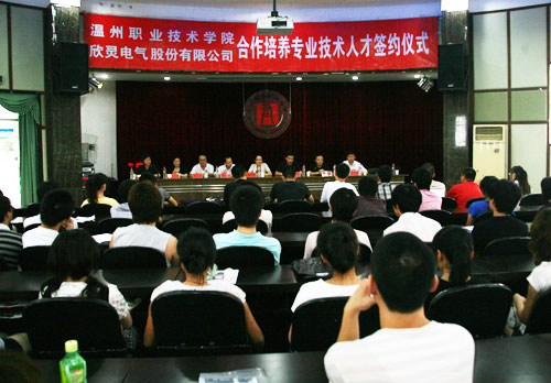 6月26日,我院与欣灵电气股份有限公司举行了联合办学、定向培养专业技术人才签约仪式。从此,我院订单班集团军中再添“欣灵班”。