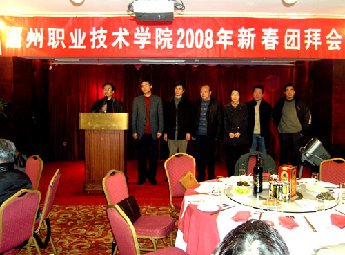 1月29日上午,我院在市区总商会大酒店举行退离休干部新春团拜会,150多位老干部欢聚一堂,回顾2007年的工作和收获,展望2008年的美好前景。学院党委班子成员丁金昌、倪集崇、夏晓军、兰玉景、王向红、何忠、朱金荣、陈维彬向各位老干部拜早年,祝大家在新的一年里快乐幸福,健康长寿,吉祥如意!党委副书记倪集崇主持了会议。