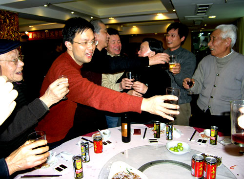 丁金昌院长(图左二)向离退休老干部们敬酒