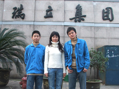 2007年度浙江省优秀团员、电气系团总支书记李慧芹(图中)下企业看望实习学生