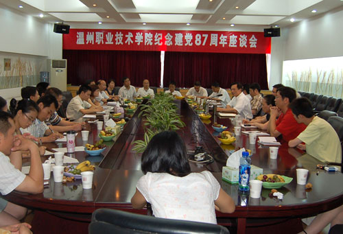 6月27日下午在行政楼三楼会议室,学院组织召开座谈会庆祝中国共产党成立八十七周年。学院党委委员、各党总支(直属党支部)书记,2007年度优秀共产党员、民主党派负责人30余人参加了座谈会。会议由纪委书记何忠主持。