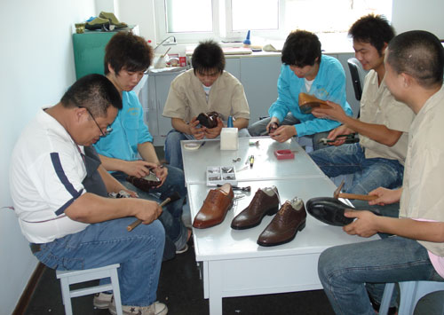 皮鞋高端产品——意大利真皮大底精品鞋传统制鞋工艺手工制作研究和教学现场
