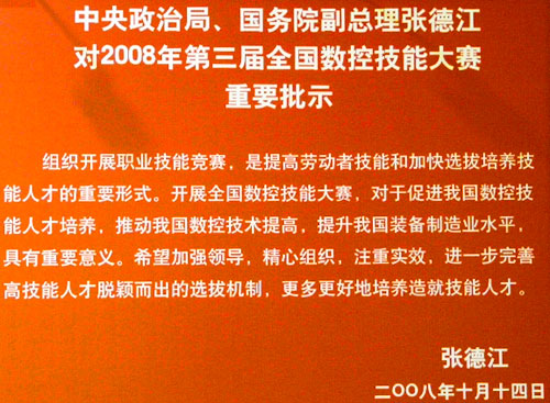 大赛自2008年10月16日开始至10月24日结束,历时9天,本次大赛有来自全国28个省市、自治区的607名选手参赛。国家六部委及各级领导都十分重视本次大赛,国务院副总理张德江同志专门为本次大赛题词。因此本次大赛云集了全国各省的数控技术精英,可谓是数控技术的全国颠峰对决,各省代表队选手都发挥出了很高的竞技水平,竞争相当激烈。为了客观公正地评定大赛成绩,本次大赛成绩将在大赛结束1个月后公布。