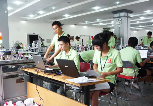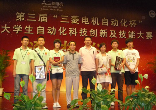 在8月21日刚刚落下帷幕的第三届“三菱电机自动化杯”大学生自动化科技创新及技能大赛上,我院由电气电子工程系苏绍兴老师指导的温职院创新技能1队学生蔡健、潘胜江、陈荣荣获得了技能大赛组一等奖,由蔡晓东老师指导温职院创新技能2队学生胡朝晖、林颖、施成芬获得二等奖。本届“三菱电机自动化杯”大学生自动化科技创新设计大赛由中国自动化学会主办,三菱电机自动化(上海)有限公司和东北大学承办。