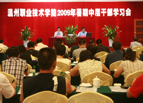 8月18日至8月20日,学院在宁波象山松兰山度假区隆重召开2009年暑期中层干部学习会,会议通过专题报告、分组讨论、大会反馈交流等形式进行研讨。学院领导陈光天、丁金昌、倪集崇、夏晓军、兰玉景、王向红、何忠出席了会议,学院在职副处及以上中层干部、院有关民主党派负责人、学院院级及以上科研院所负责人、正高职称的教师参加了会议。