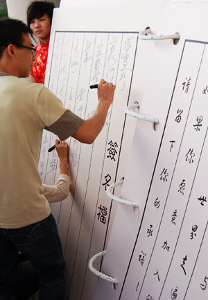 继续翻看这本巨大的“活页书”,里面是一句句号召广大青年学子热爱读书活动的名言警句和签名档。在场的老师和学生纷纷在签名档留下自己的名字,将以实际行动加入到读书工程活动中。
