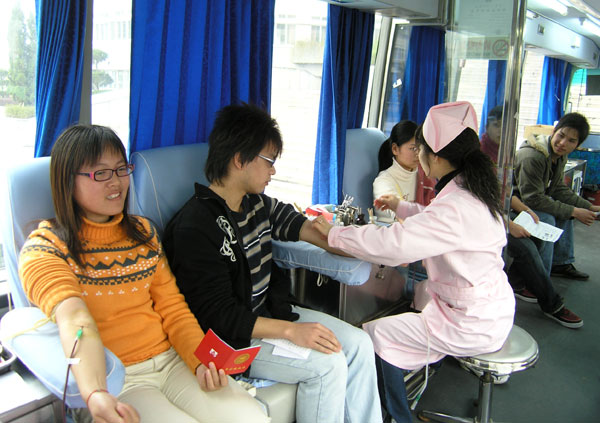 学生踊跃参加献血活动