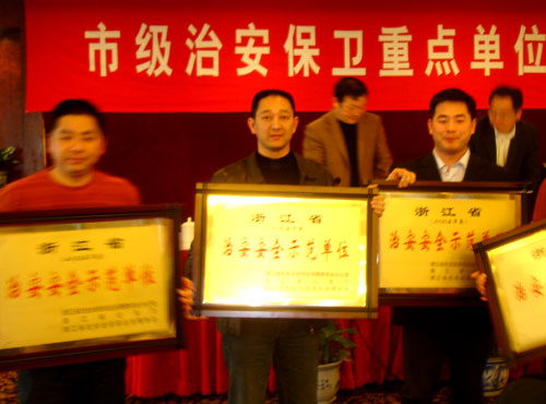3月9日,温州市治安安全保卫重点单位保卫工作会议在市区万豪大酒店召开,会议表彰了省级“2005年度省级治安安全示范单位”、“市级治安安全示范单位”、“治安先进集体”等荣誉,我院被省综治办、省公安厅、省社会治安综合治理协会授予“浙江省治安安全示范单位”称号,这是继我校获 “平安校园”称号后取得的又一荣誉,同时我院也是唯一一所获此殊荣的市直学校。我院人保处副处长赵清弟还代表我院在会上作了经验交流报告。