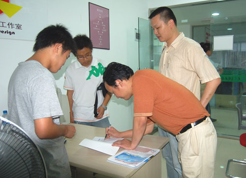 在我院创业精品园参观时,客人们对我院提出的“三园”理念,即我院把创业园分为精品园、商贸园和草根园非常感兴趣。在服装设计工作室里,几位创业学生还向客人们热情介绍起了几款自己设计的衣服以及DIY鞋(自己动手设计的鞋子)。浙江省高校毕业生就业指导中心主任陈龙春还现场在自己主编的书上签名勉励一位创业学生。