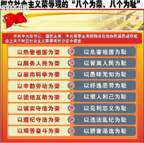 树立社会主义荣辱观的“八个为荣、八个为耻”