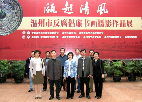 4月5日,我院组织了全体教工党员到温州市展览馆认真观看了由温州市纪委、市监察局、市文联共同举办“瓯越清风——温州市反腐倡廉书画摄影作品展”。 此次展览共展出了书画、摄影作品210幅,我院轻工学院副院长田正的书法作品——《正气浩然》也经过了组委会和有关专家认真评选入选参展。