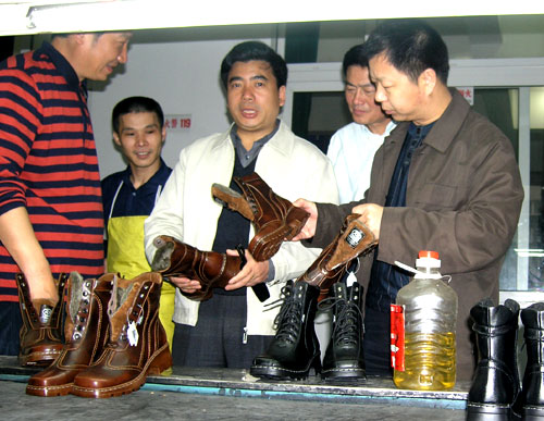 温州市教育局副局吴恕成在我院鞋机实训基地调研