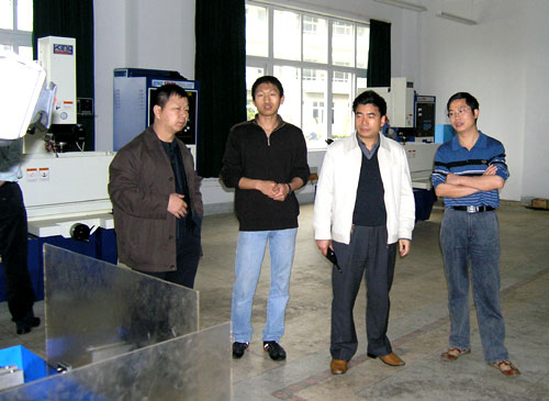 温州市教育局副局吴恕成(右二)在我院数控实训基地调研