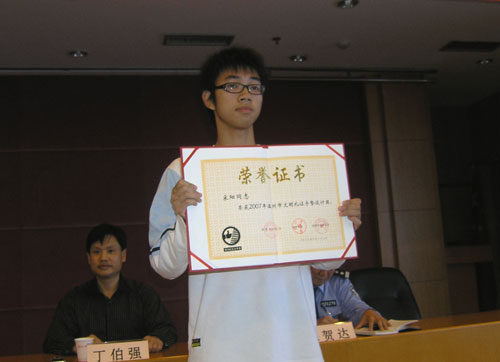 10月30日,在温州日报大楼举行了“斑马线”礼让手势推广会,会议上对“斑马线”礼让手势首创者——我院建筑工程系学生宋阳同学进行了表彰,温州市文明办、温州日报社、市交警支队三家单位联合向他颁发了“文明礼让手势设计奖”。当宋阳参加领奖时,许多参加会议的社区干部们、小学生感到非常不可思议,议论纷纷。 “怎么会是位大学生?”“还是位小伙子?”“这哥哥真厉害”……着实,宋阳的上台让很多人大跌眼镜,出乎意料。连他自己都觉得,自己的随意参与,竟然成了大家心目中的佼佼者,用他自己的话说:“天上掉馅饼了”。