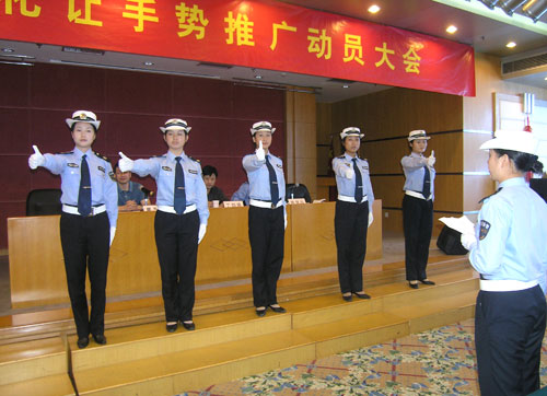 交警推广礼让手势