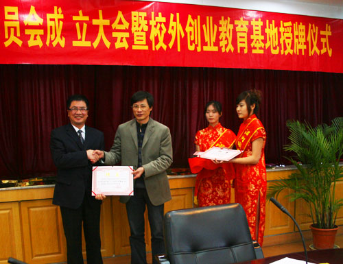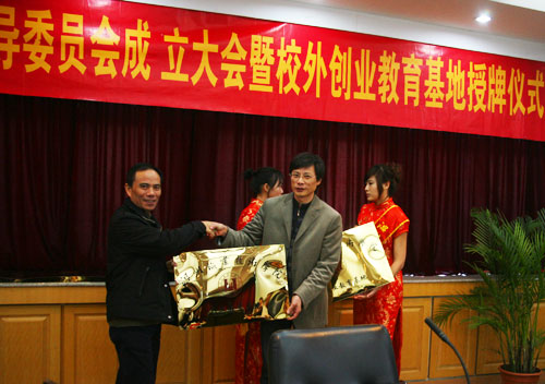 在成立仪式上,学院为18名企业家颁发了聘书,并在中国特福隆集团、中国亚龙科技集团等13家企业设立了校外创业教育基地,举行了授牌仪式。夏晓军副院长指出,我院将弘扬“敢为人先,特别能创业”的温州人精神融入素质教育体系中,使我院以创业教育为特色的职业素质教育体系成为全国示范,这是我院进行全国示范院校建设“示范点”之一。学院将秉承“厚德、长技”校训,传承和永嘉学派“义利并举”的文化精髓,构建创业课程体系、创业文化体系、创业实践体系,扩建大学生创业精品园区、创业商贸园区、创业草根园区,完善以创业教育为主要特色的职业素质教育体系。此次成立创业教育指导委员会,给校外创业教育基地授牌,就是要把温州职业技术学院的大学生创业教育工作做成亮点、做成示范。