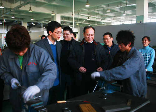 在我院行政楼三楼会议室,丁金昌院长汇报了我院近几年的发展情况。他说,温州职业技术学院现在社会声誉、影响日益扩大,使温州在中国高职教育中占有一席之地,先进的高职办学理念吸引了许多学校慕名而来参观学习。学院的示范建设得到了市领导、财政部门的重视,现学校正全力打造高职教育的“温州模式”,为温州经济建设做出贡献。李步鸣局长听取了工作汇报后,对学院的建设和发展给予充分肯定。他指出,学校好不好,关键看学生,温职院培养的学生定位很准确,校企合作、工学结合的办学模式很有特色。同时,李步鸣局长对我院发展前景也十分看好,他说,作为温州地方性高职院校,温职院应与社会经济发展接轨,进行多层次的人才培养,培养高级、中级不同层次的技术专家,在温州组建起职教集团,把学校办得更大,使社会影响力更大。
