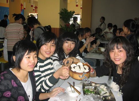 这是一个要求团体合作的活动项目,以寝室为单位,进行现场制作。各队在规定时间内完成指定数目的饺子,通过和面、择菜、做馅、翰皮来表现配合的默契性。在同学们无比高涨的情绪中,收获乐趣,得到享受。大学生们在比赛中秀出了自己动手、团结协作的一面。