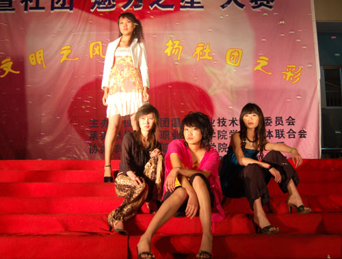 除了表演类节目,晚会中还穿插了观众评价、“魅力之星”抽奖活动等节目形式,增强了晚会的观众参与性。晚会进行中,模特协会的走秀把晚会的气氛推向了一个高潮。最后,大合唱《爱的奉献》,为本次闭幕式晚会划上了一个圆满的句号。