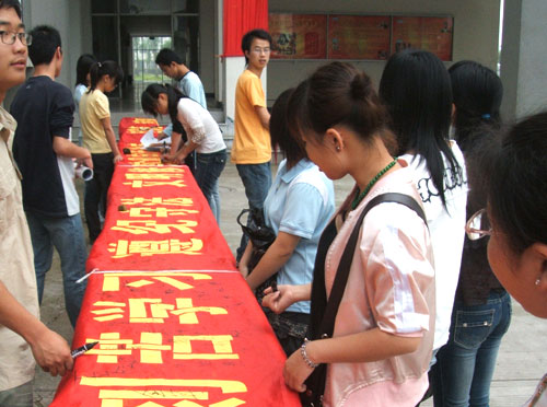 据了解,有近千名同学和教师在横幅上踊跃签名,表达了支持和参与评估的愿望与热情,也表达对学院明天的一种美好祝愿。