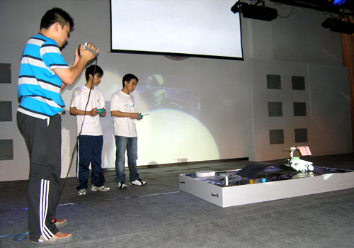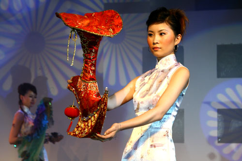 我院师生向专家自信地亮出了“拿手好戏”,展示了各个特色专业的技能。晚会最出彩的要数我院轻工学院选送的“概念鞋”、服装秀,学生模特们摆开秀场,向专家一一展示了我院师生的服装、概念鞋作品,其中许多作品曾在全国、省、市技能大赛中获奖。机械系选送的的“月球车”表演,工商系酒店专业选送的餐巾折花、茶艺表演、插花表演,英语俱乐部选送的英语歌曲联唱也博得了专家们和观众的阵阵掌声。另外,学生健美操队、教工舞蹈队联袂登场为晚会助兴,展现了我院师生良好的精神风貌,师生同台表演,其乐融融。晚会的另一亮点是音乐快板节目——《学院明天更辉煌》,唱出了温职院人“争优创示范”的自信与豪迈。晚会结束后,专家们亲切慰问了全体演职人员并与大家合影留念。