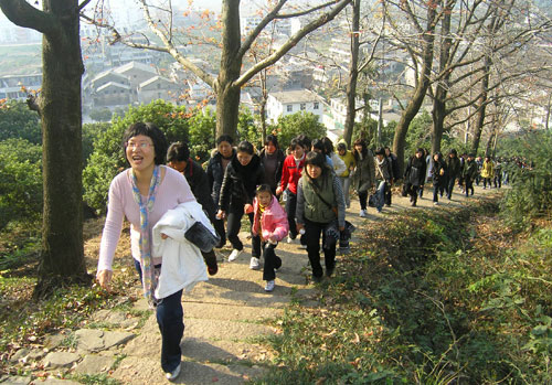 元旦前夕,学院在风景秀丽的大罗山组织了登山活动,400多名教工以勇攀高峰的气势来迎接崭新的2009年。