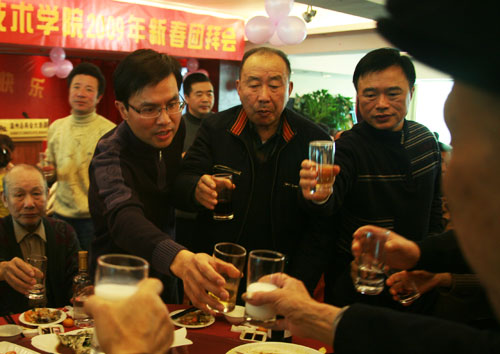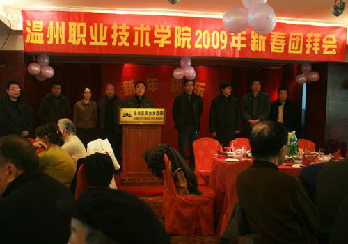 在新春佳节即将到来之际,我院于1月9日市区总商会大酒店设宴举行2009年新春团拜会。学院领导丁金昌、倪集崇、夏晓军、兰玉景、王向红、何忠、朱金荣、陈维彬出席会议,并向离退休老干部职工拜早年,送去了新春的问候。