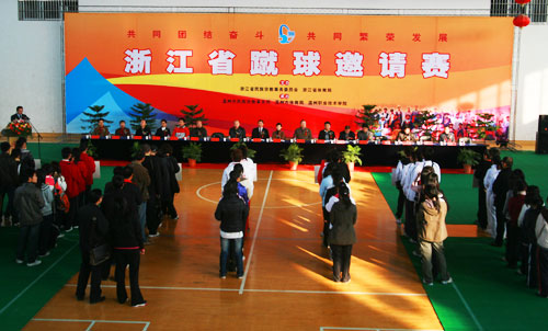 12月8日,2008年浙江省蹴球邀请赛在我院开幕。浙江省民宗委副主任陈智慧、省体育局副局长应祖明、温州市委常委统战部部长余梅生、我院副院长兰玉景等出席了开幕式。余梅生部长在开幕式上致欢迎辞。