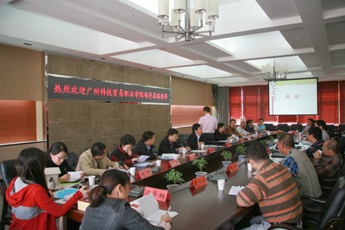 11月2日,广州科技贸易职业学院党委书记张杰一行15人来我院交流考察。我院党委书记陈光天与张杰书记在行政楼3楼会议室进行了友好地交流座谈,陈书记对客人的到来表示热烈的欢迎,并陪同客人们参观了我院实训基地。
