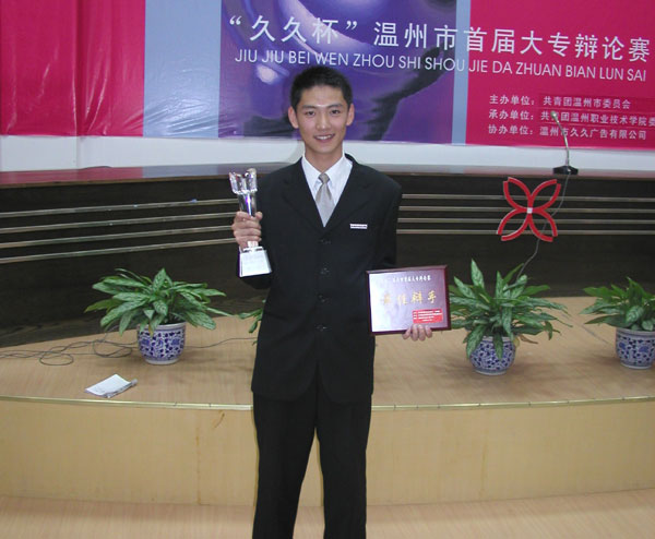 12月23日晚,温州市“久久杯”首届大专辩论赛在我院图书信息中心学术报告厅落下了帷幕。我院辩论队在最后决赛中,击败最后一个对手——浙江工贸职业技术学院笑到了最后。经过近一个月的训练和比赛,我院辩手们一路过关斩将高奏凯歌,击退了温州大学、浙江东方职业技术学院、浙江工贸职业技术学院等各路好手,荣登冠军宝座。同时,我院财会系的金勇同学还被评为本次辩论赛的最佳辩手。团市委书记温暖书记到场为我院辩论队进行了颁奖,表示祝贺。