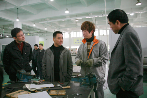 我院党委书记陈光天和院长丁金昌还陪同朱贤良副书记视察了我院校内生产性实训基地,并详细介绍了我院近年来取得的办学成果,朱贤良副书记还兴致盎然地与在场的学生做了零距离的交流,现场气氛轻松愉快。