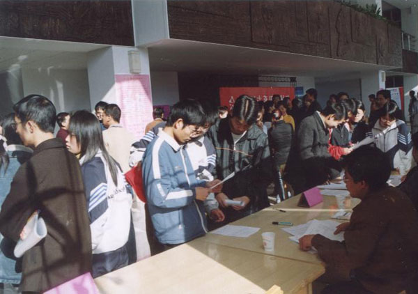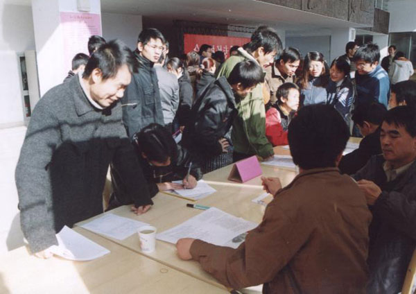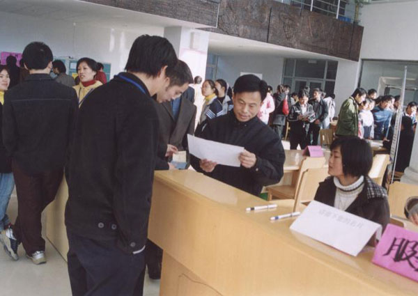 由于本届毕业生人数少,企业需求量大,各企业展开了激烈的“选苗”竞争。本次招聘会仅邀请我市二十多家上规模、上档次的省级高新技术企业参加。会上共提供就业岗位180 余个,超出了毕业生数。招聘会上已有二十二位学生当场和浙江森森汽车零部件有限公司、温州宏星紧固件有限公司签订了就业协议,绝大多数学生与招聘单位达成了就业意向。