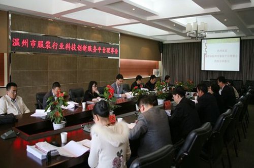 4月24日下午,温州市服装行业科技创新服务平台(以下简称服装平台)在温州职业技术学院召开第一届理事会。会议由温州职业技术学院院长、服装平台理事长丁金昌教授主持。市科技局综合处副处长林海和我院王向红副院长出席理事会。