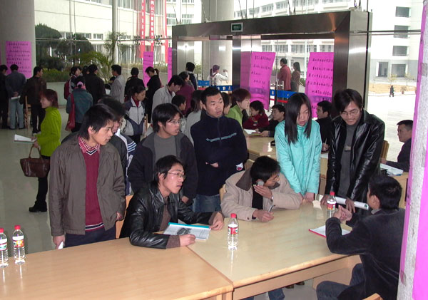 温职院建筑工程系在元月4日下午举办的“建筑经济与管理、房地产投资与管理专业二00四届毕业生就业洽谈会”上传出喜讯:来自温州市的建设集团公司、建筑工程公司、装饰工程公司、房产营销公司、园林绿化工程公司、招投标代理公司、审计事务所等20多家具有相当实力的单位提供了建筑、工程项目管理、工程施工、基建审计、土建水电安装预决算、房产策划营销、园林设计、招投标代理、公司文员等岗位共计198个。其中房产类142个岗位,建筑类56个岗位,而今年毕业生总数为59人,毕业生数与岗位数之比为1:3.36。