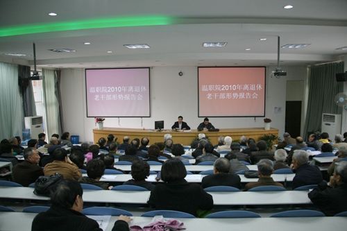 3月30日,我院2010年离退休老干部形势报告会在成教学院召开,院党委书记陈光天通报了我院去年的工作和下一步发展思路。院党委副书记倪集崇出席会议。会议由组织部长徐利群主持。