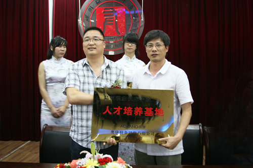 夏晓军副院长和王振权总经理代表校企双方在协议书上签字,并分别向对方授予“学生就业实习实践基地”、“人才培养基地”牌匾。协议规定,进入“奥康虚拟订单班”的50名同学可以按现就读的专业教学计划进行专业学习,在课余和假期,奥康集团按双方共同商定的企业培养方案对学生进行集训,组织顶岗实习、就业见习等。企业将支付实习补贴与见习薪酬。